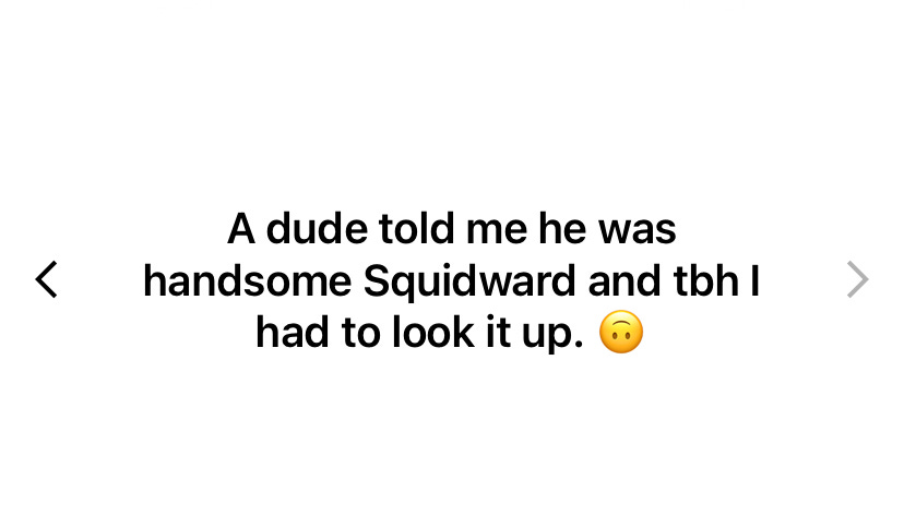 You gotta love a pickup line that you don’t get at all until you google it. It’s niche, it’s special, they probably use it for everyone and are the reason that “who tf is handsome Squidward” is suddenly trending on Google searches.